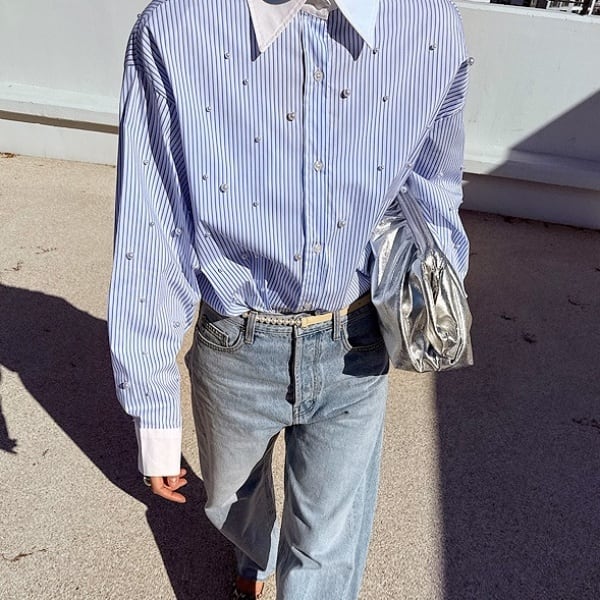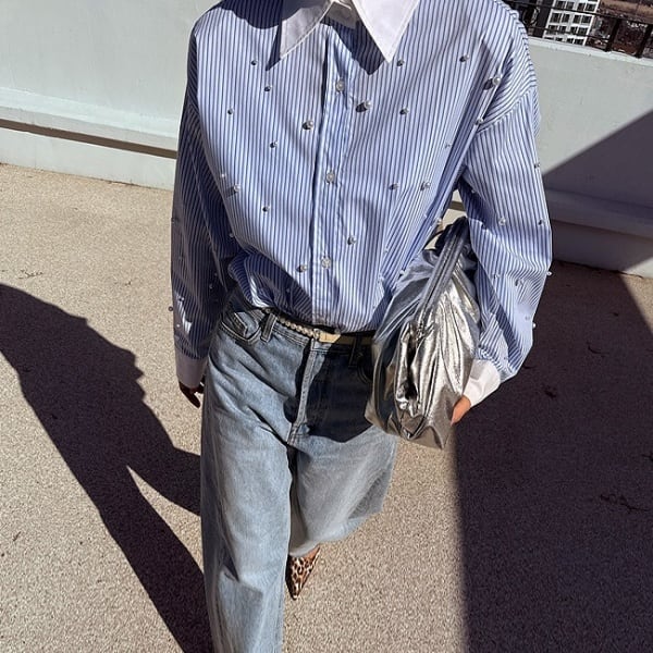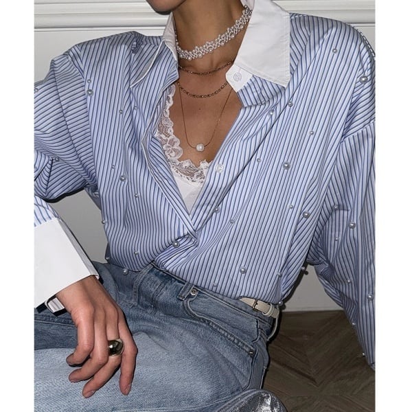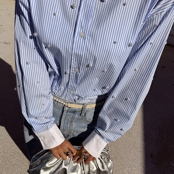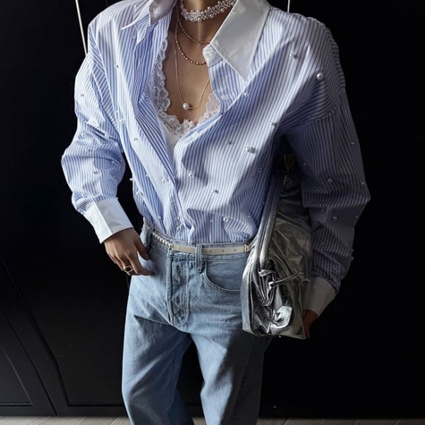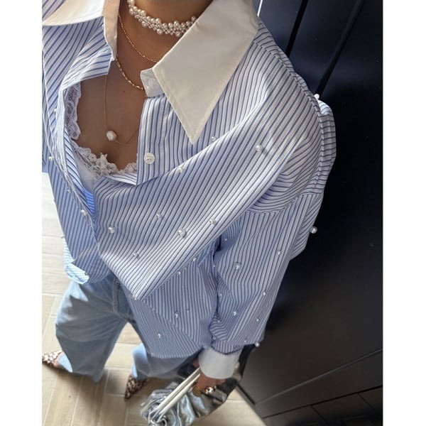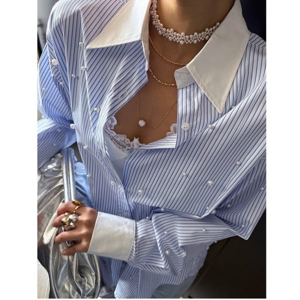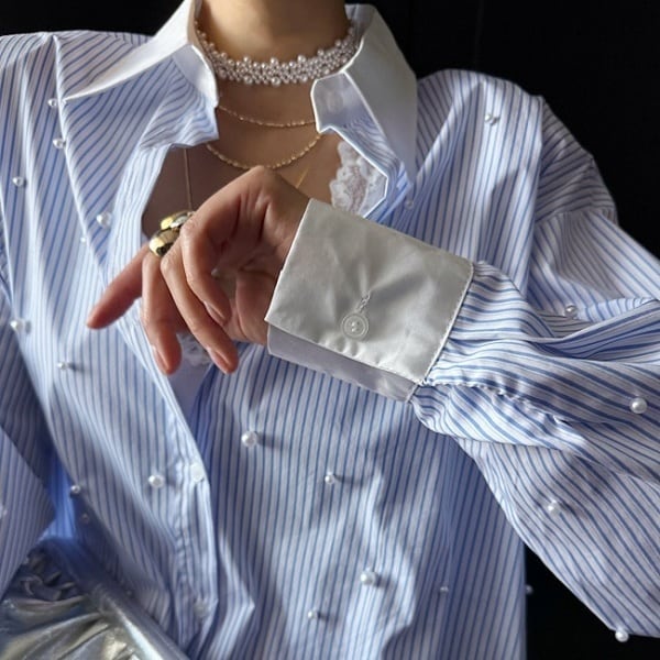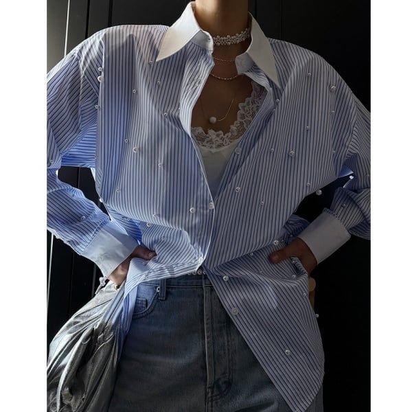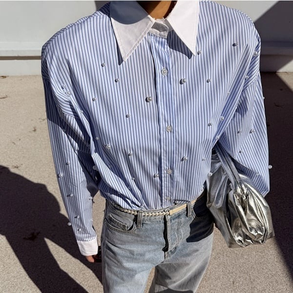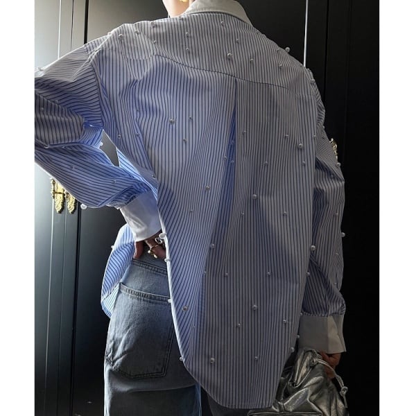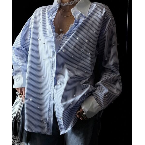 ストライプ パール シャツ 233333