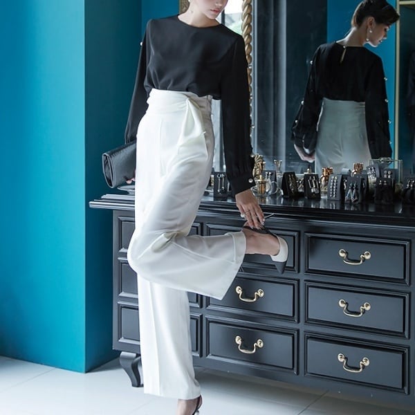 フェイクパール スリット シフォン ブラウス 233386