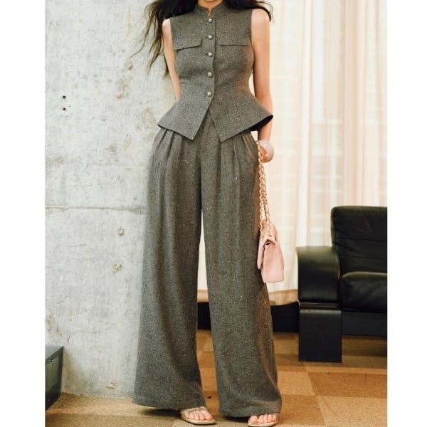 ノースリーブ ペプラム ベスト/ワイドレッグ パンツ 233763