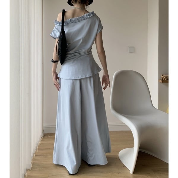 フリルネック ワンショルダー カットソー&ワイド パンツ 234479