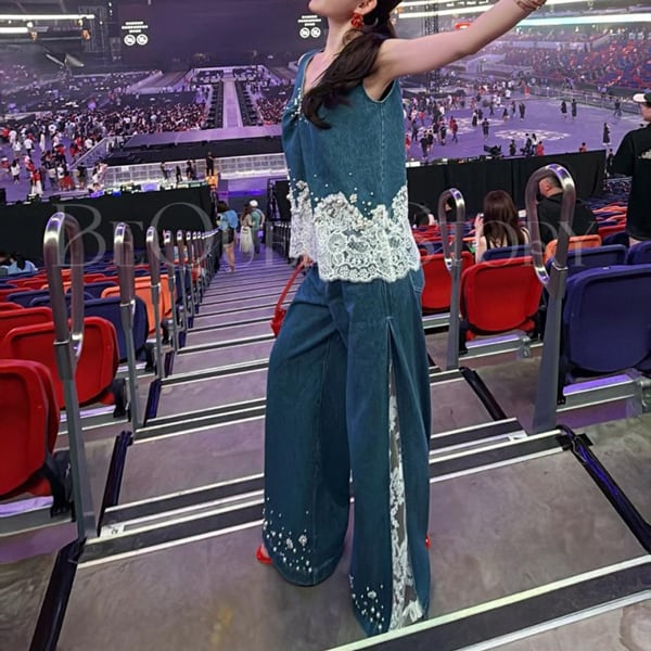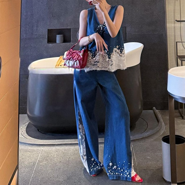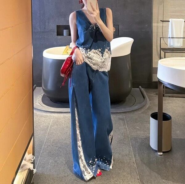 【Setup】レース デニム ベスト &レース ドッキング デニム 235187