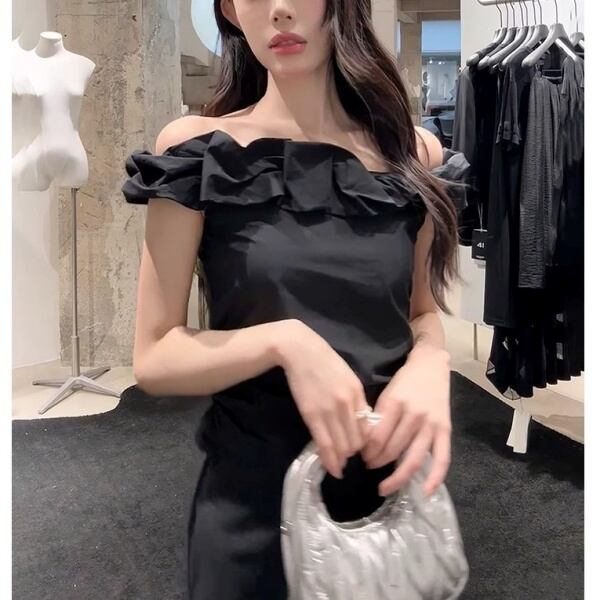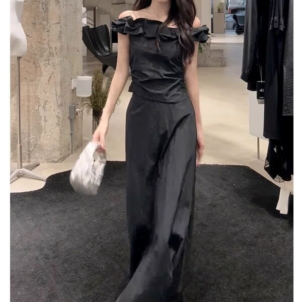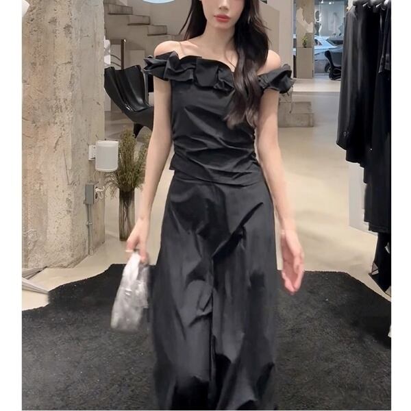 【Setup】オフショルダー フリル カットソー&マキシ スカート 235158