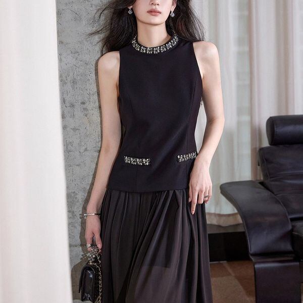ビジューパイピング フェイクセットアップ ワンピース 235939