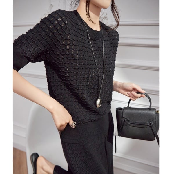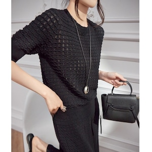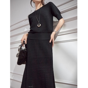 【Setup】ワッフル ニット カットソー&ロング スカート 235864