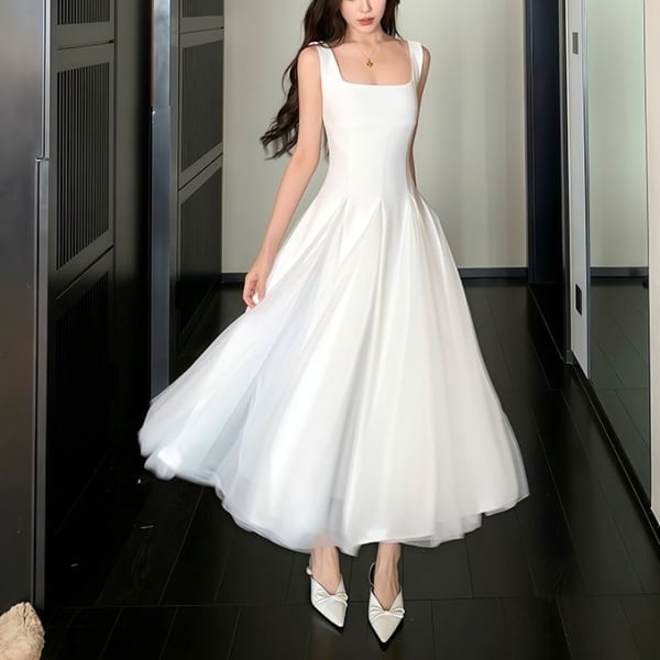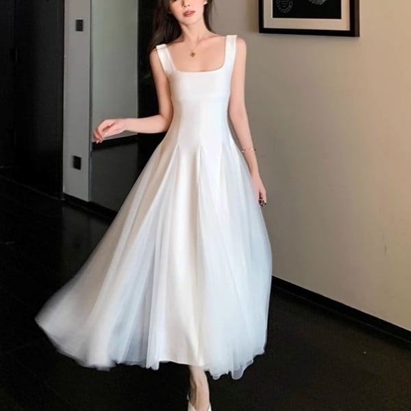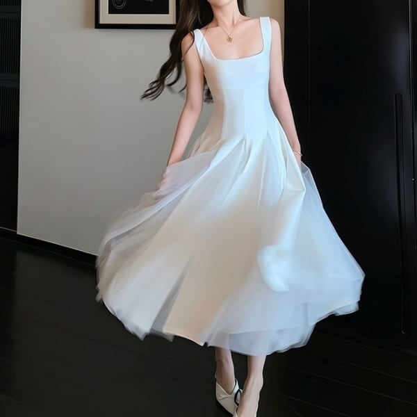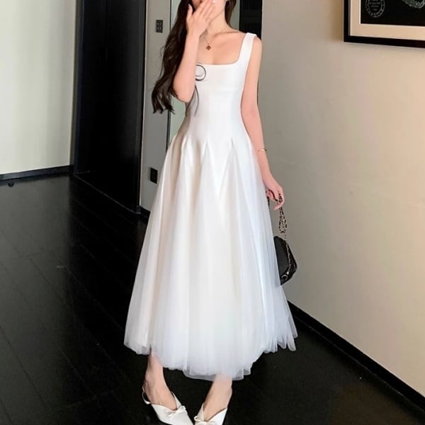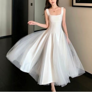 ノースリーブ チュール スクエアネック ワンピース 235817