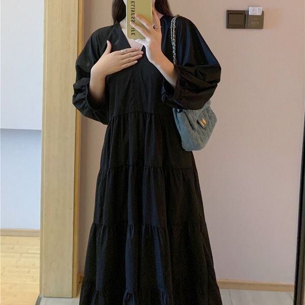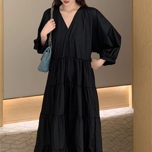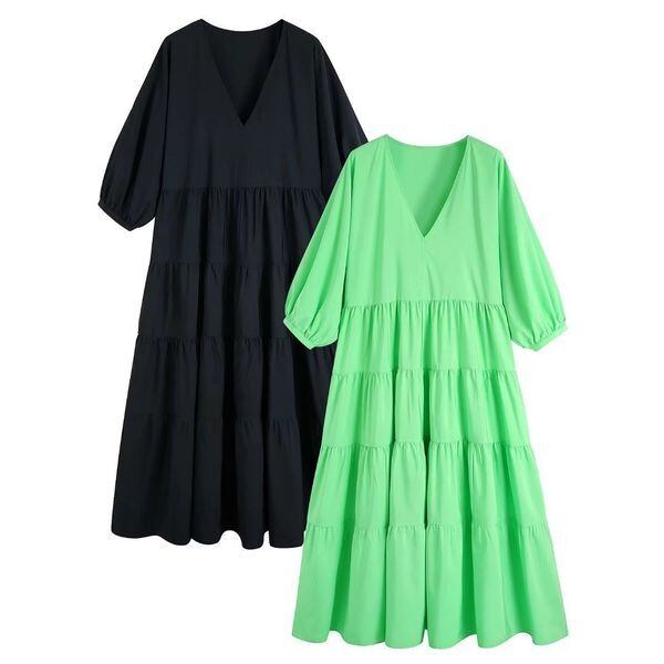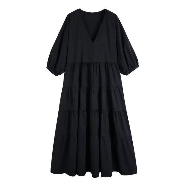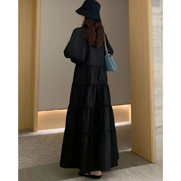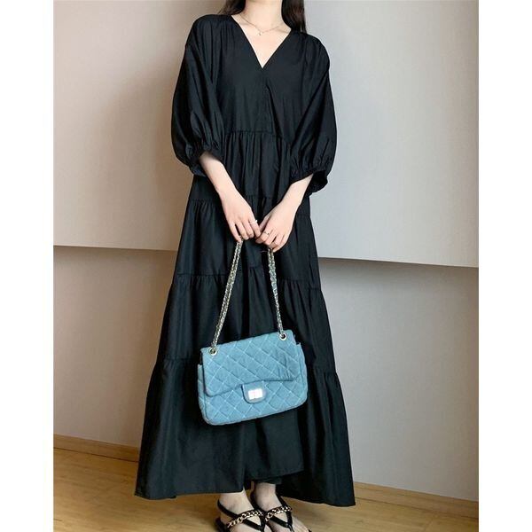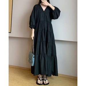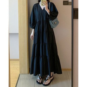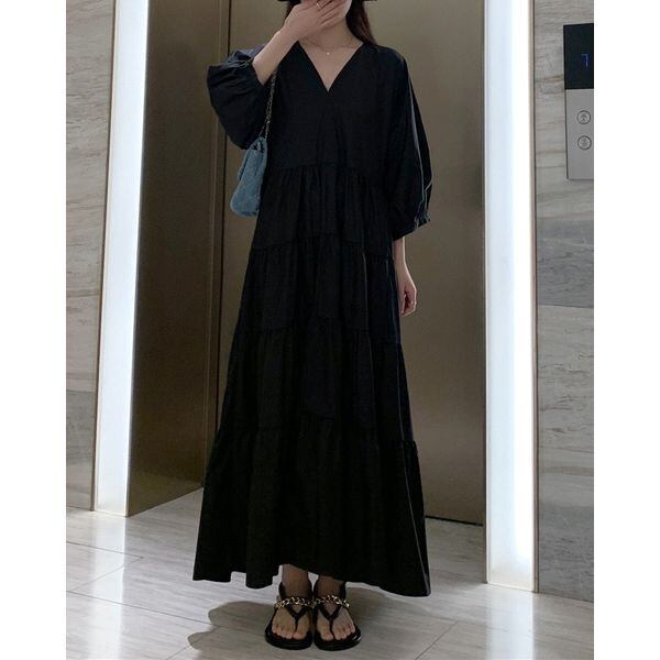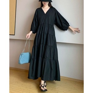 Vネック ティアード ロングワンピース 236099
