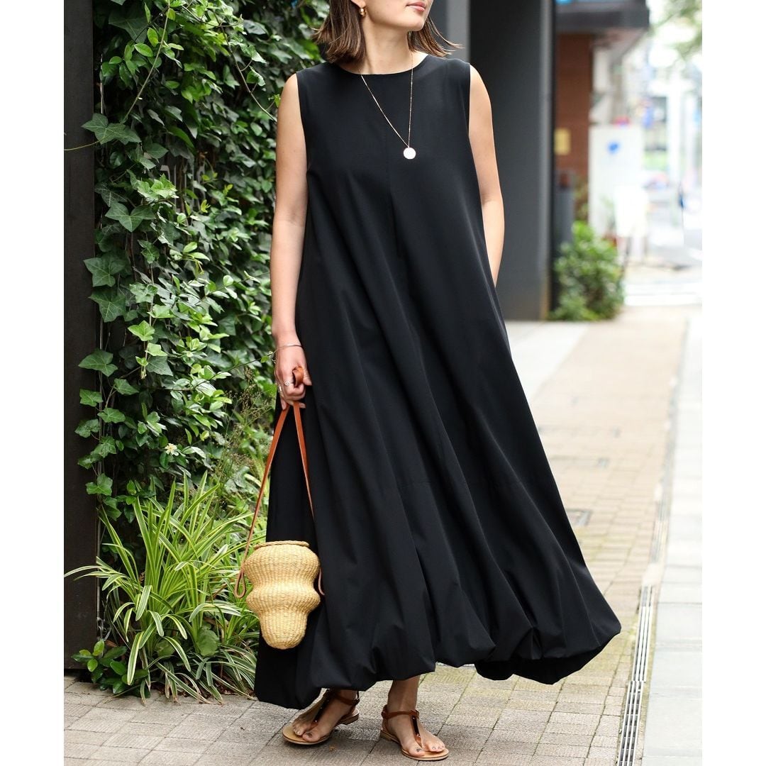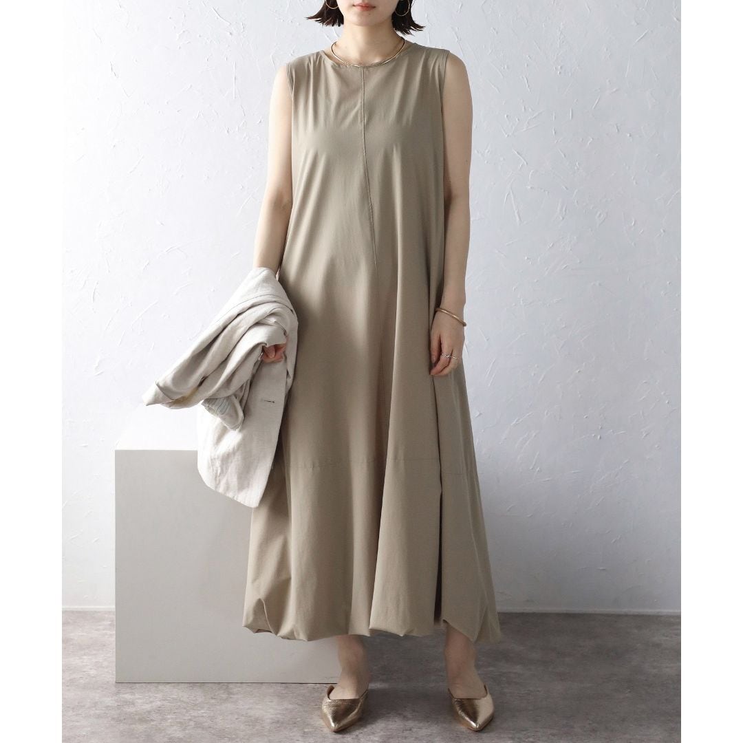 【即納】裾バルーン接触冷感ノースリワンピ 236193