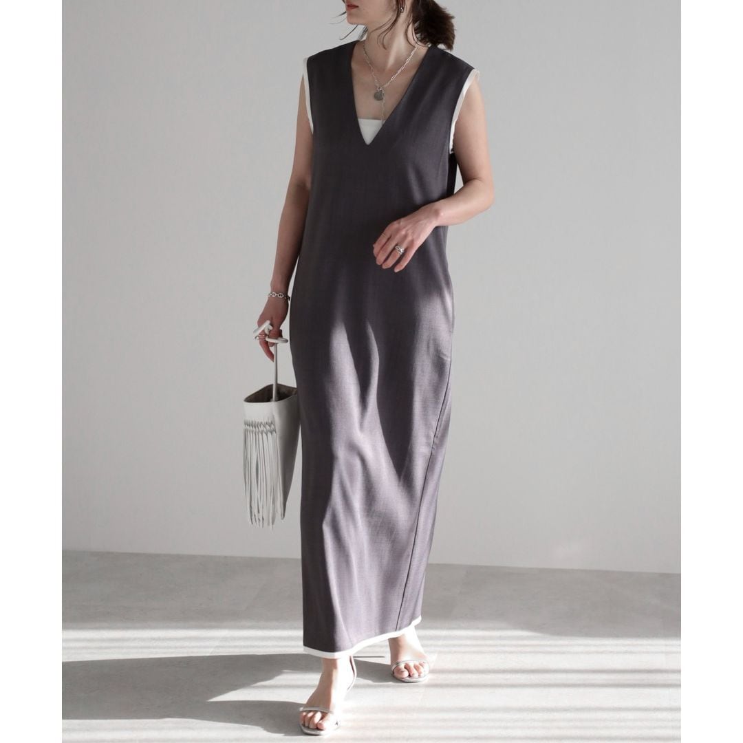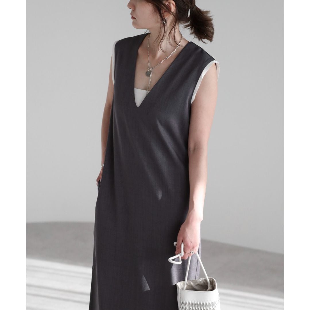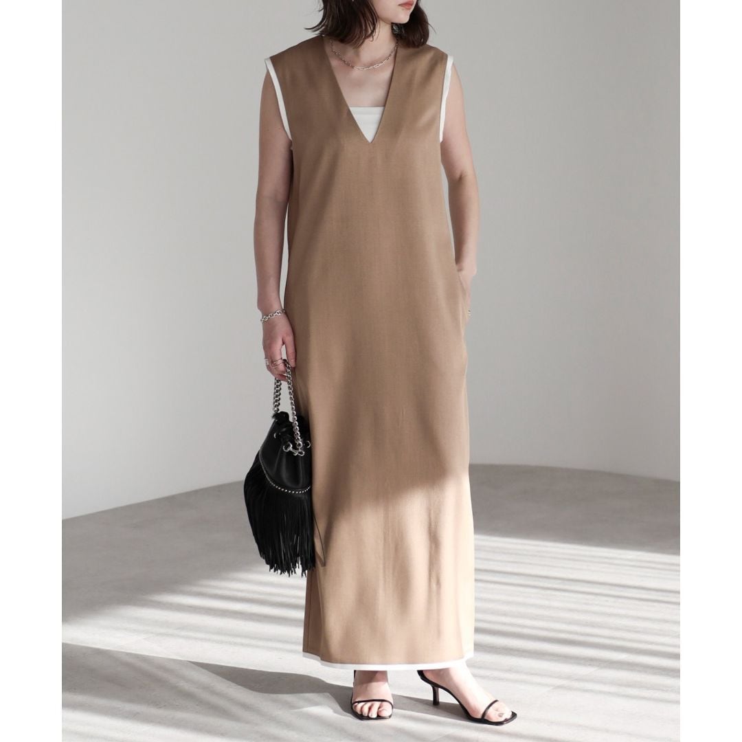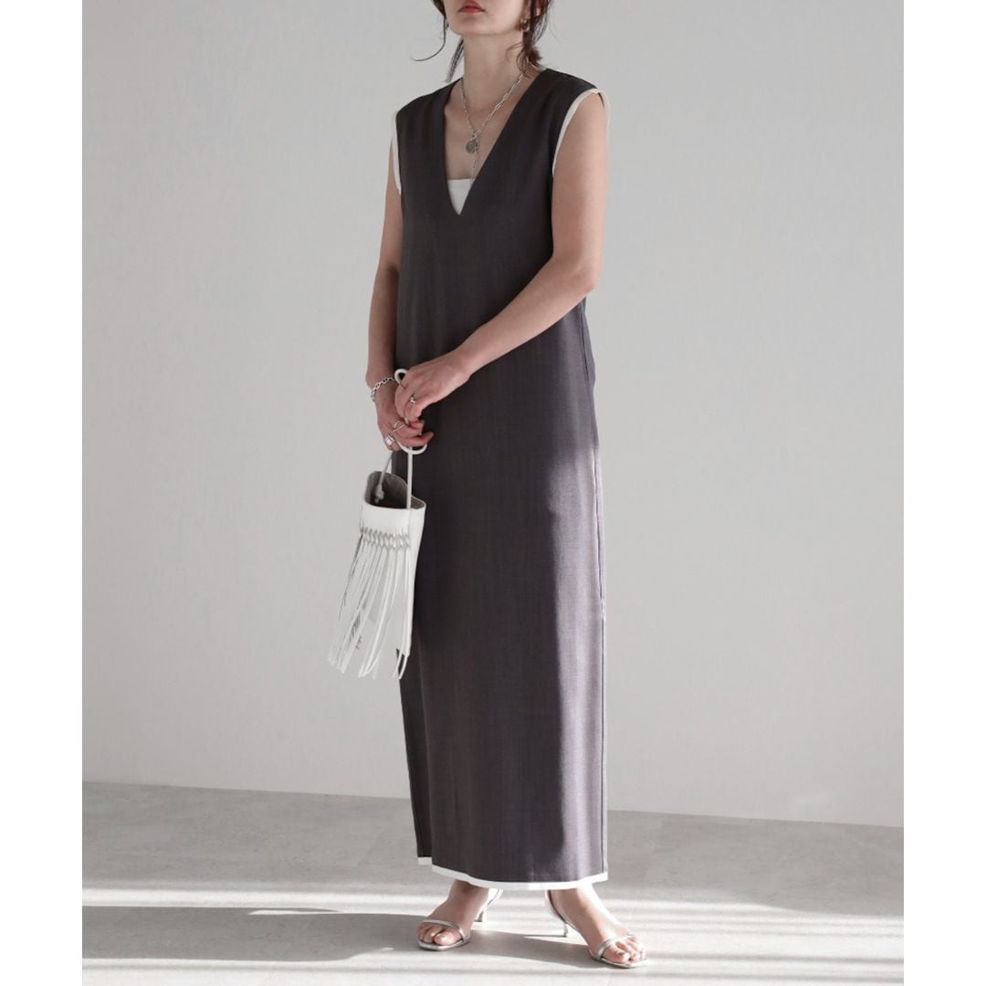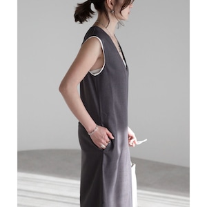 【即納】ディープVネック レイヤードデザイン ジャンパースカート 236225