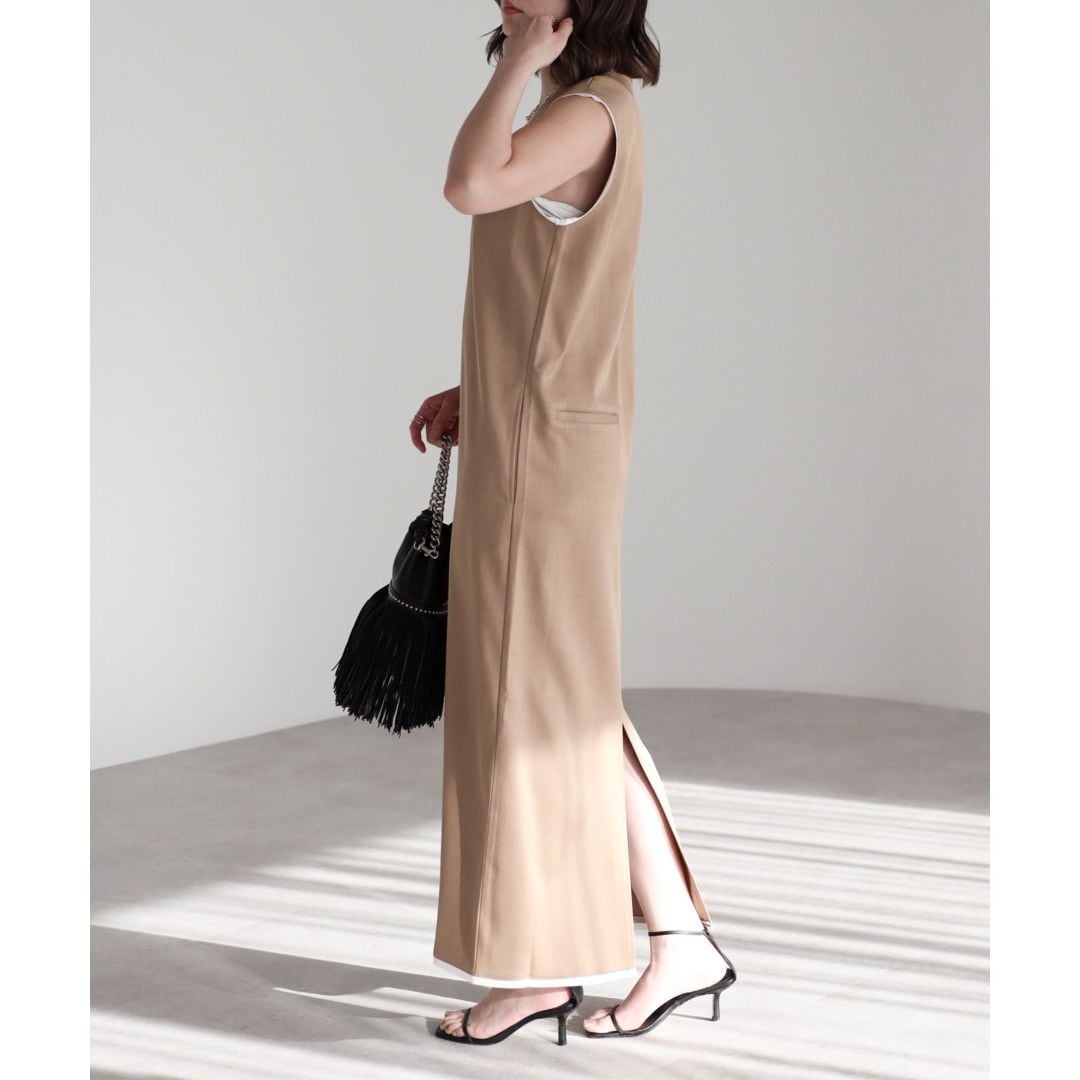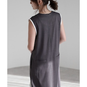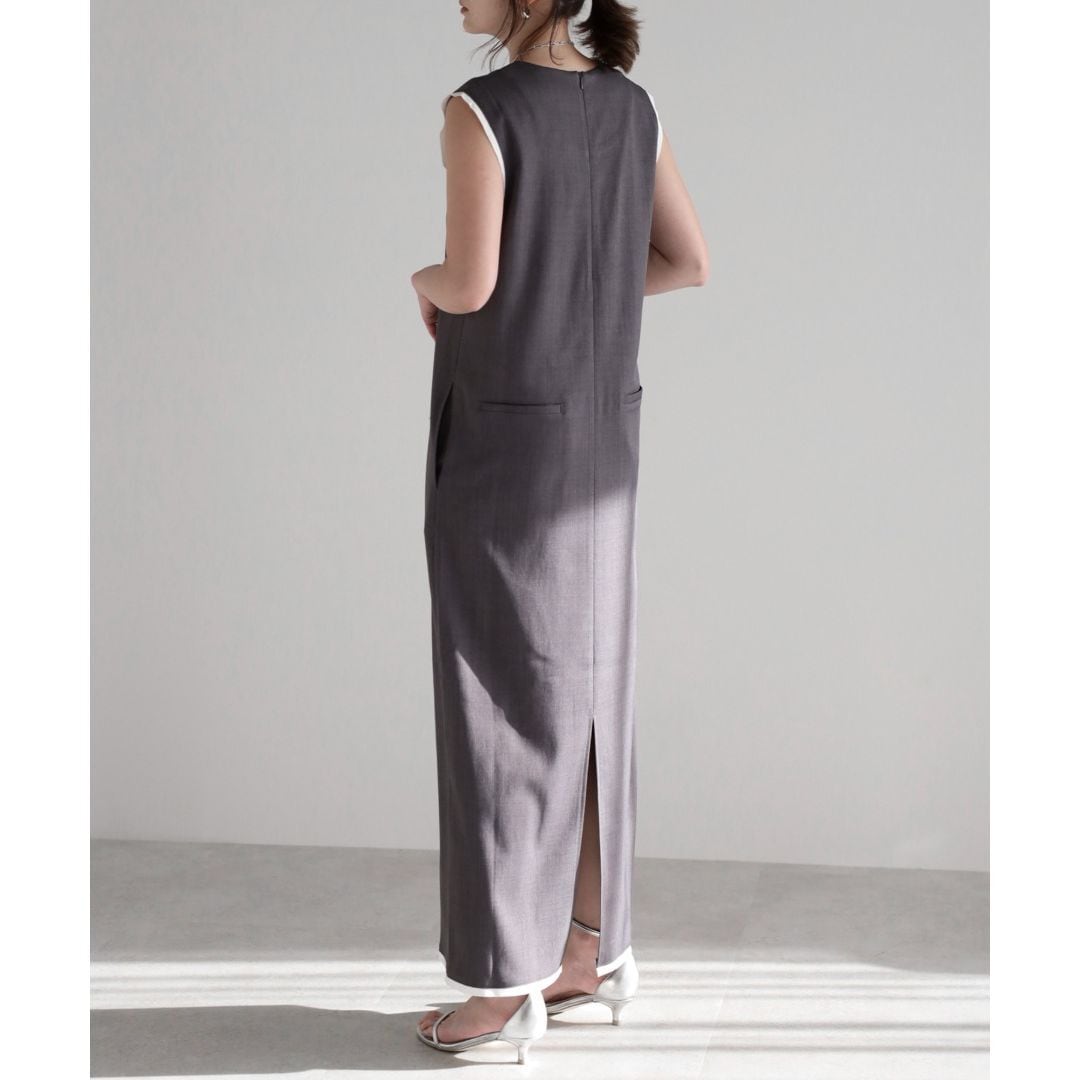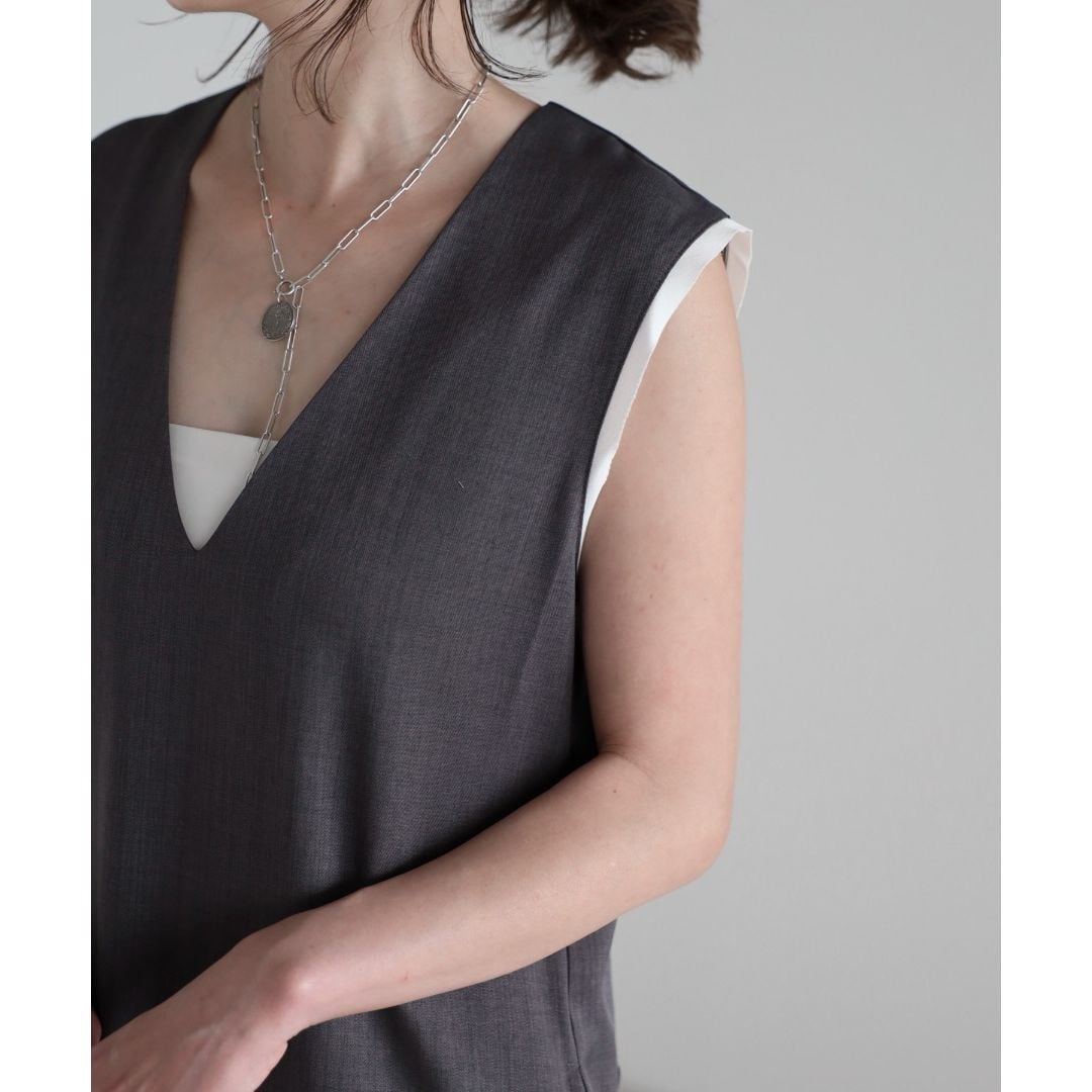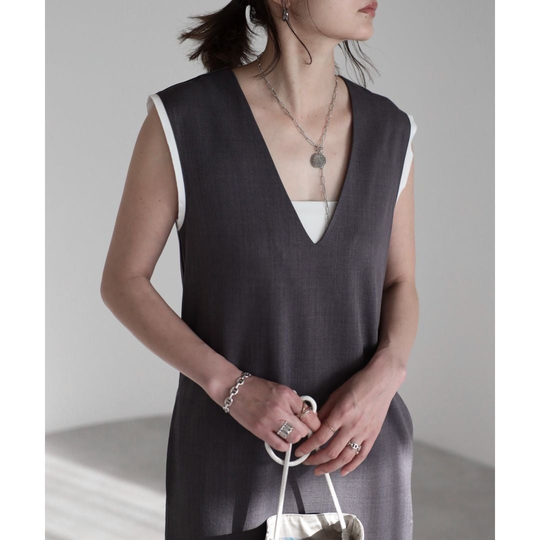 【即納】ディープVネック レイヤードデザイン ジャンパースカート 236225