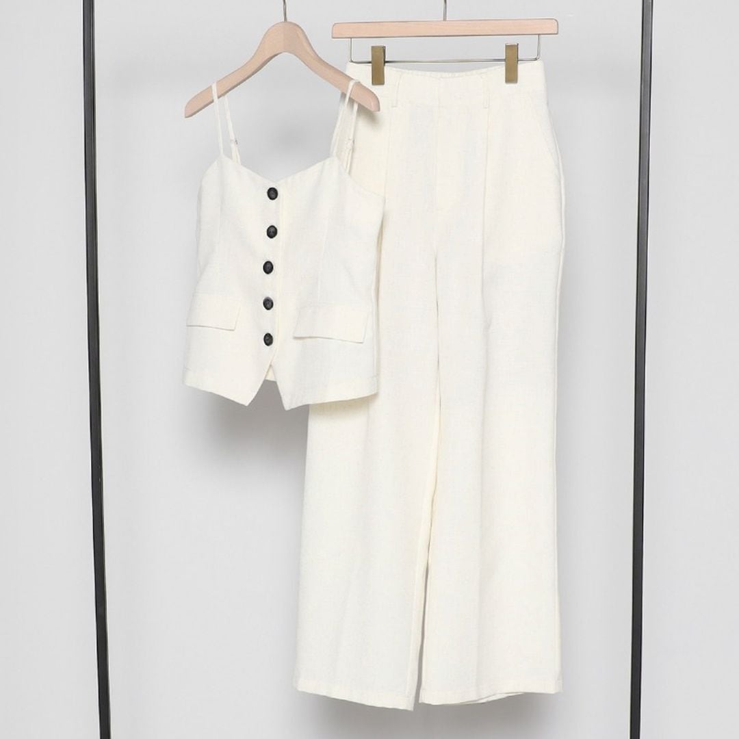 【即納】フロントボタン ハンサムビスチェ & タックストレートパンツ セットアップ 236241