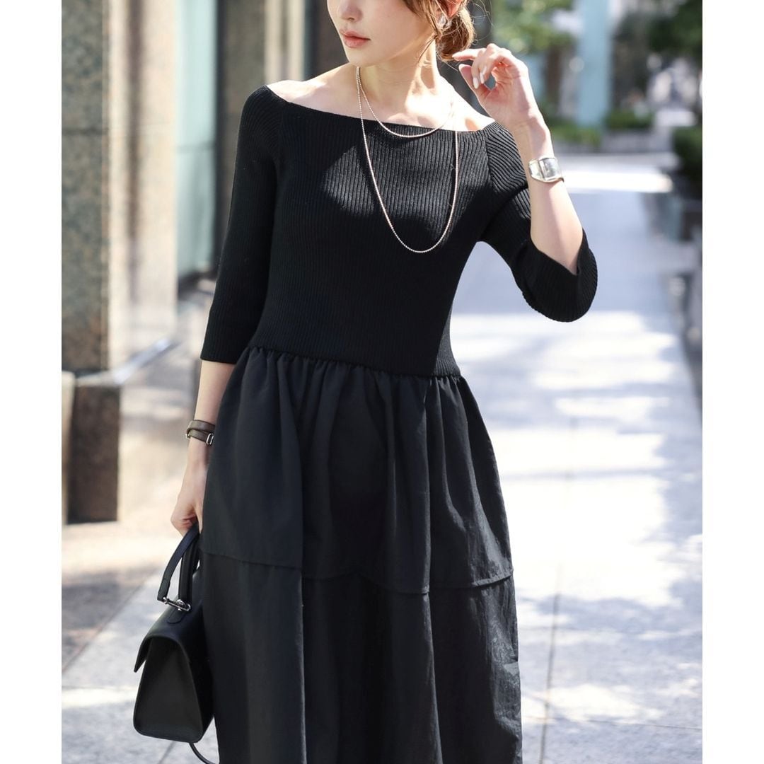 【予約販売】ニットコンビ コクーンワンピース 236258