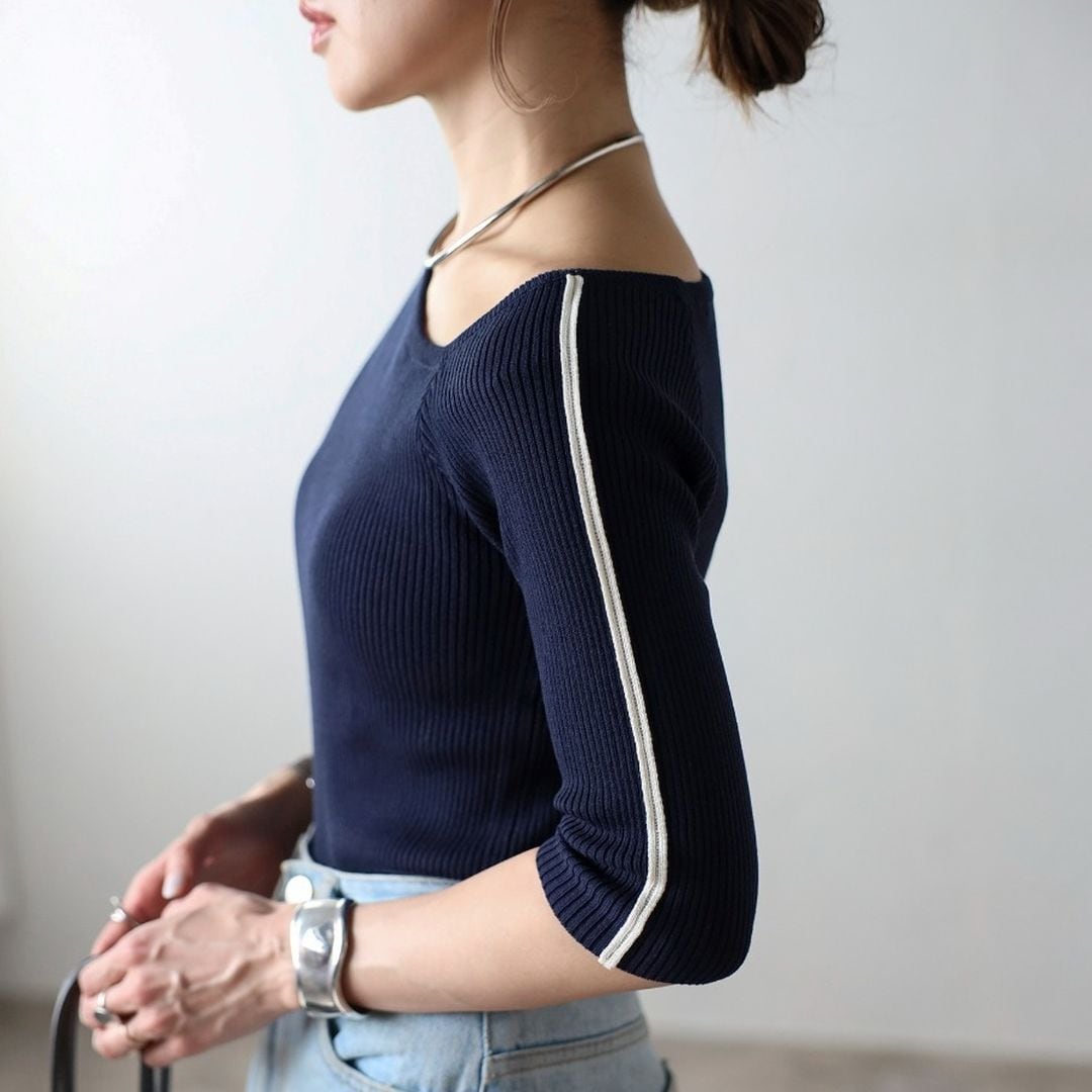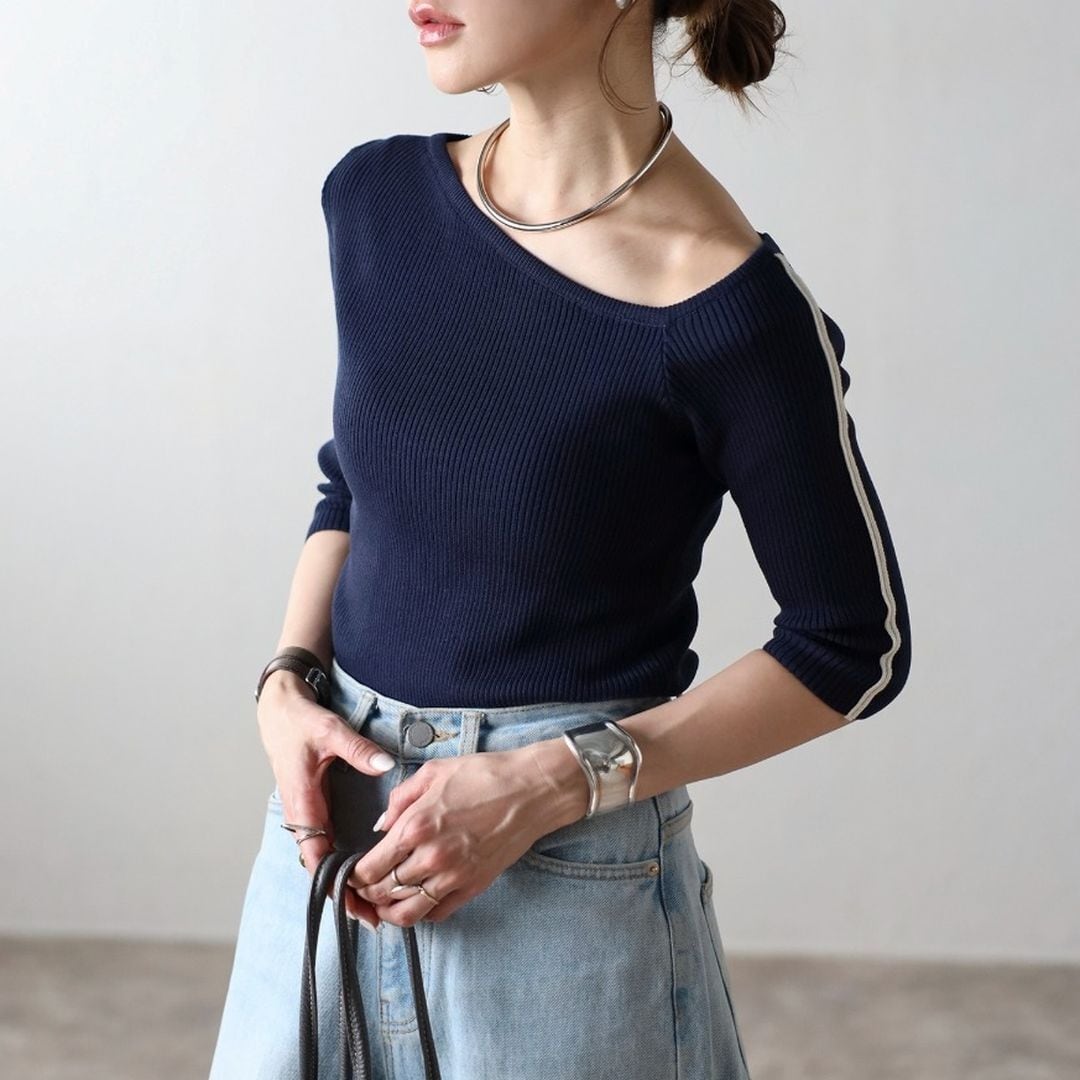 【即納】スリーブライン アシンメトリーネック ニット 236261