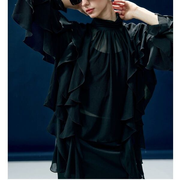 ハイネック チュール ブラウス 235954
