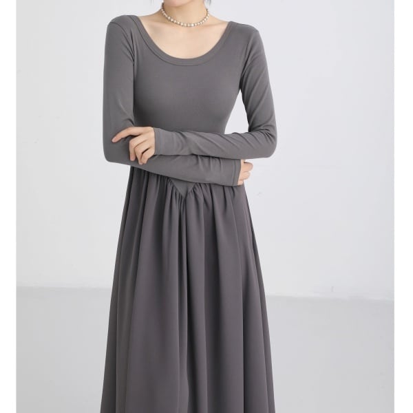 ラウンドネック パネル ワンピース 236562