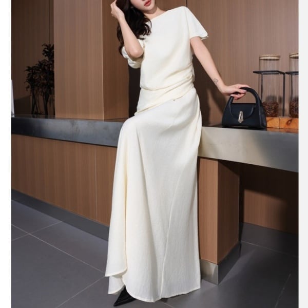 ボートネック アシンメトリー カットソー/マキシ ワイド パンツ 236459