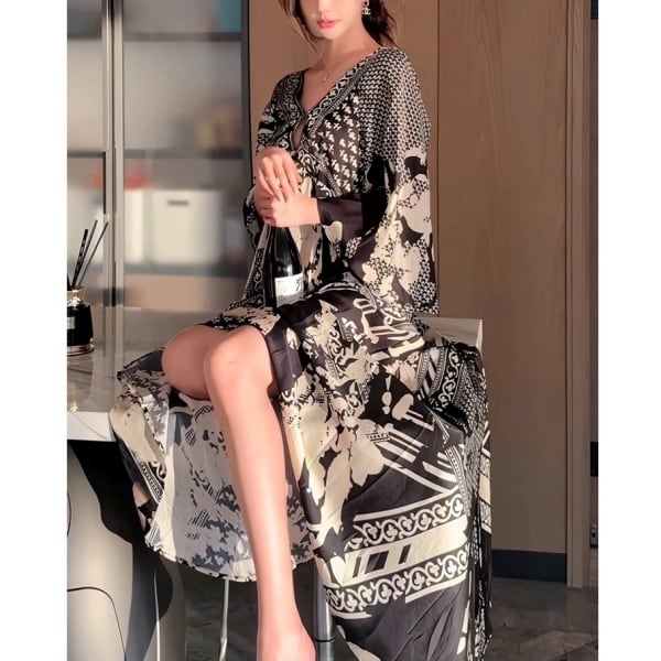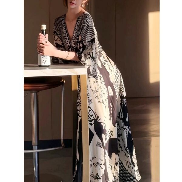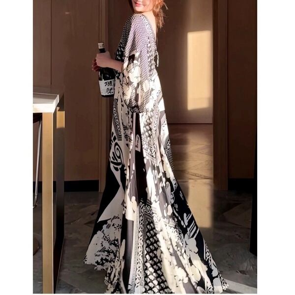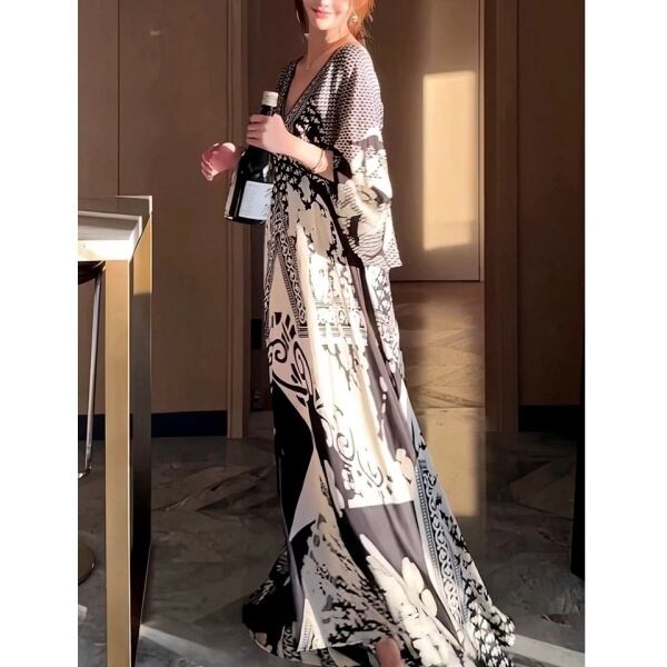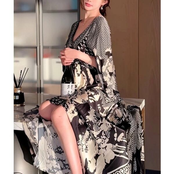 Vネック シフォン ワンピース 236875