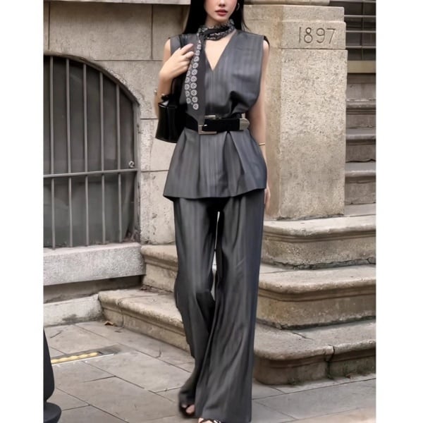 【Setup】Vネック ノースリーブ ベスト&ワイド パンツ 236867