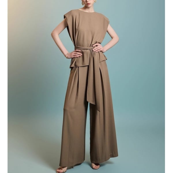 【Setup】ボートネック ウエストリボン カットソー&ワイド パンツ 236681