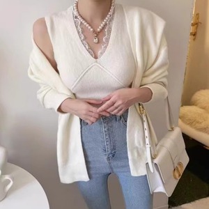【Setup】レースネック ノースリーブ ニット &ニット カーディガン 237047