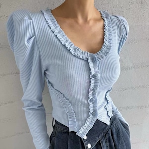 フリルネック パフスリーブ ニット 237079