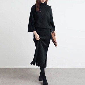 【set up】タートルネック ニット & フリンジ スカート 236911