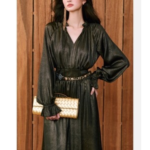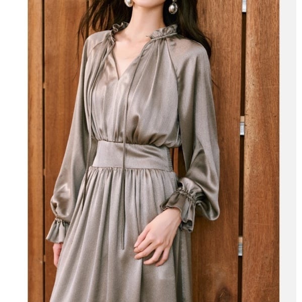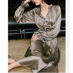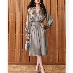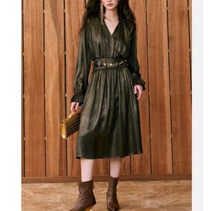 Vネック シャイニー リブ ワンピース 237007
