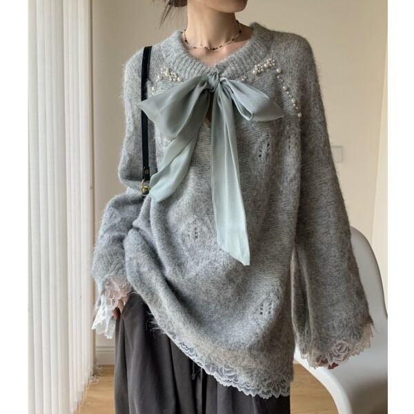 リボン レース チュニック ニット 237833