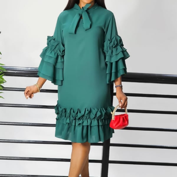 フリルスリーブ ボウタイ ミニワンピース 237856