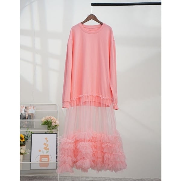 チュールフリル ドッキング スウェット ワンピース 237758
