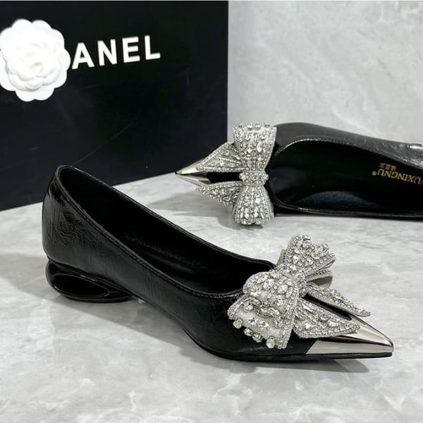ポインテッドトゥ ラインストーン リボン パンプス 238204