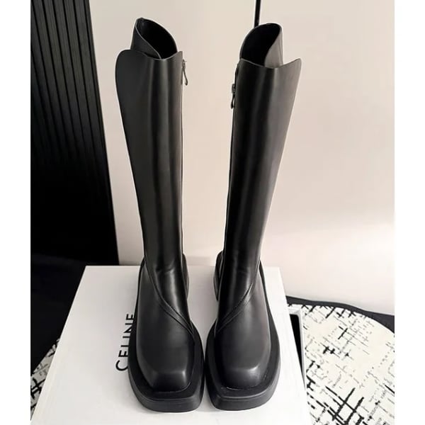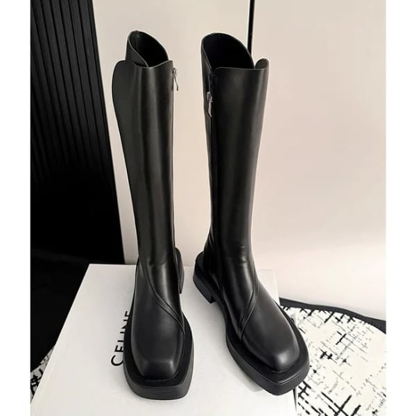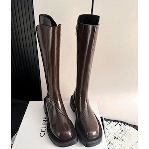 スクエアトゥ サイドジッパー ロングブーツ 238206