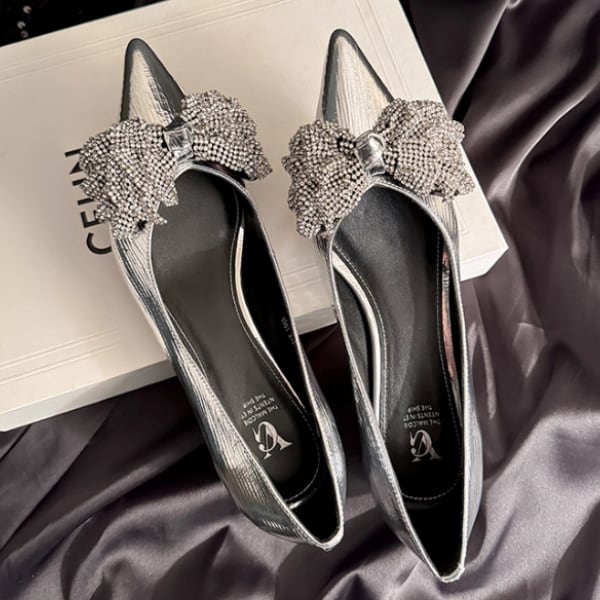 ビジューリボン ポインテッドトゥ パンプス 238212