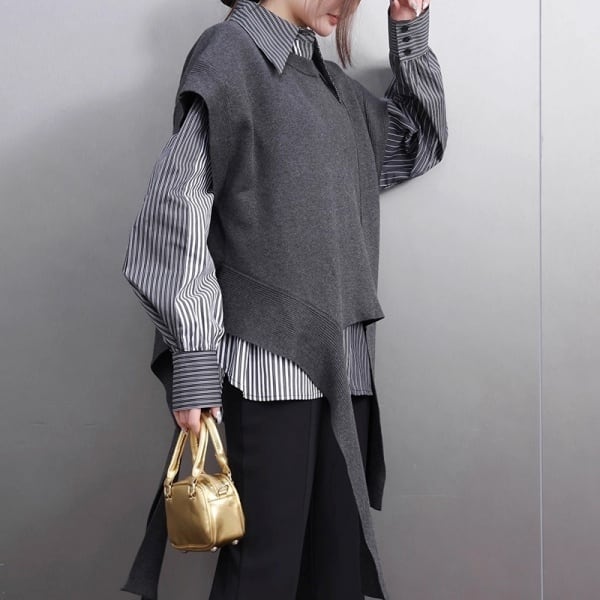 ニット ベスト & バイカラーシャツ 2piece 238269