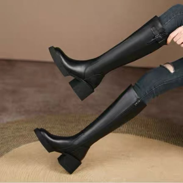 チャンキーヒール サイドベルト ロングブーツ 238215