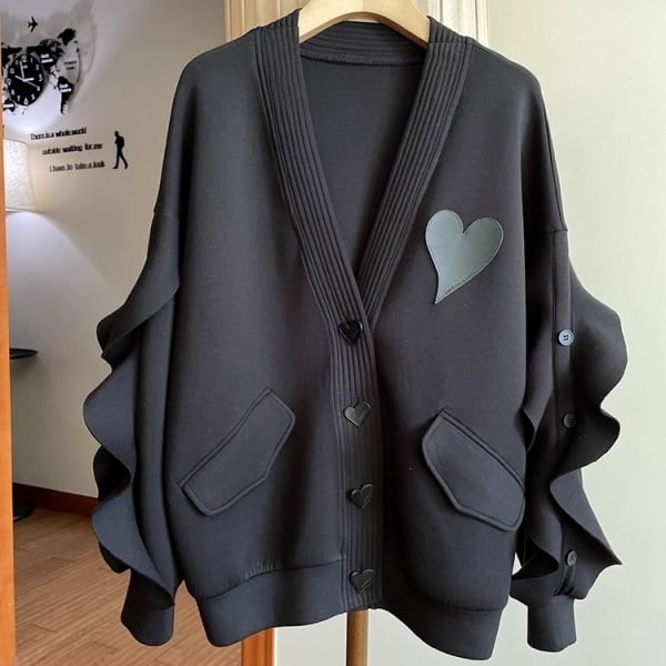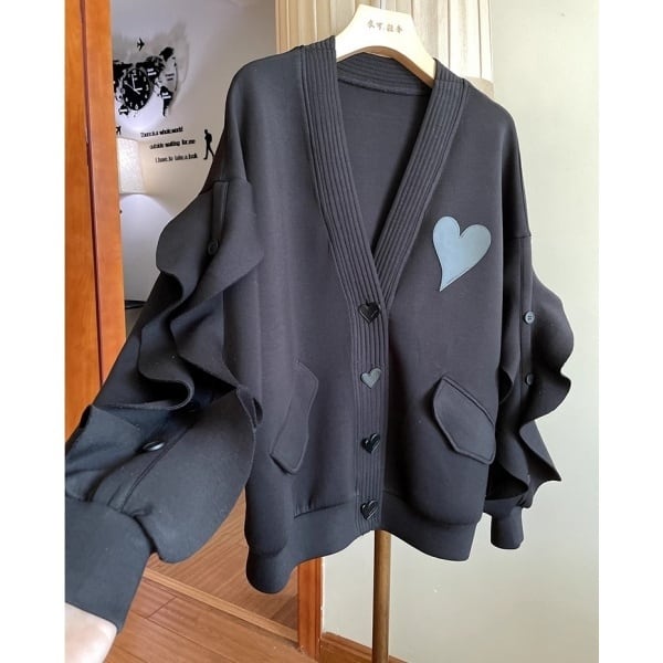 Vネック ラッフルスリーブ スウェット カーディガン 238238