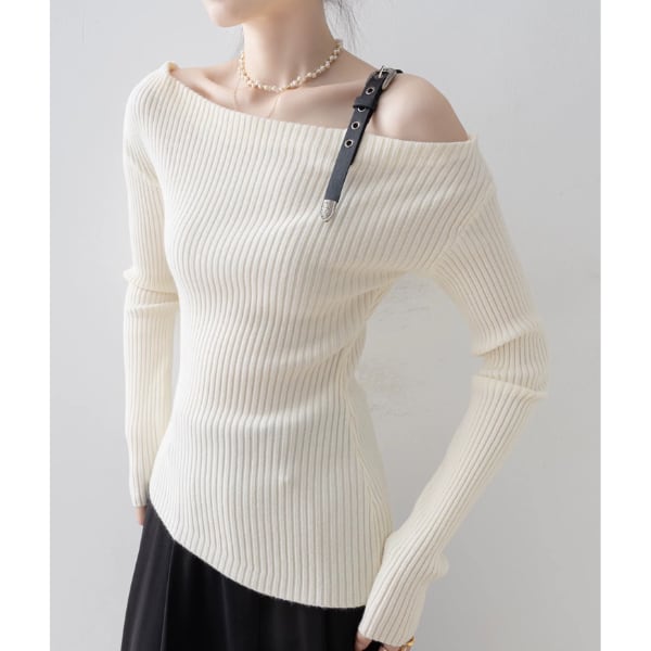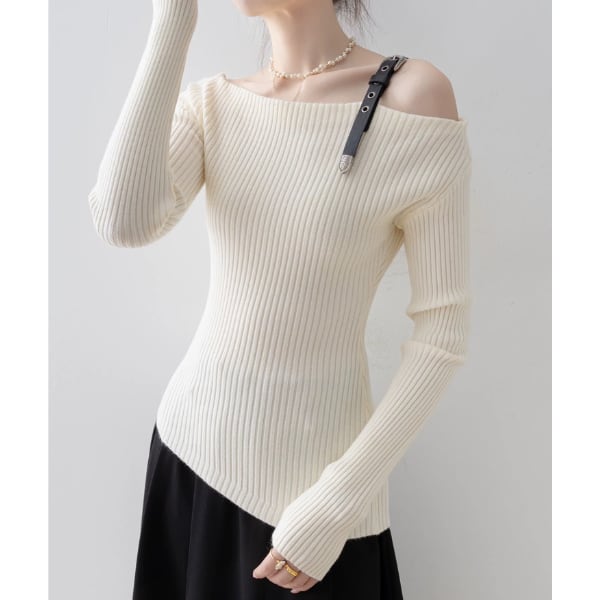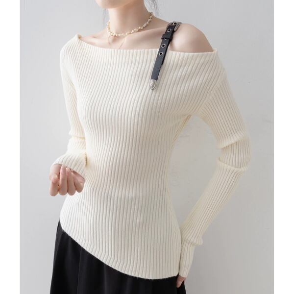 ワンショルダー ストラップ リブニット トップス 238379