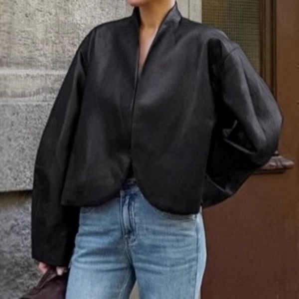 ノーカラーVネック フェイクレザーブルゾン 238531