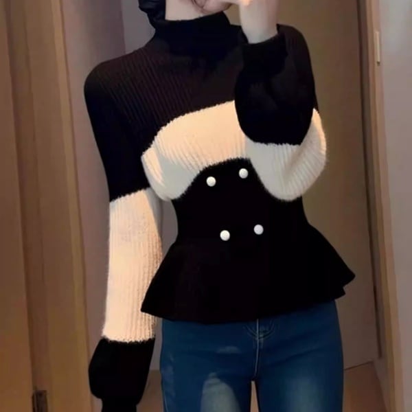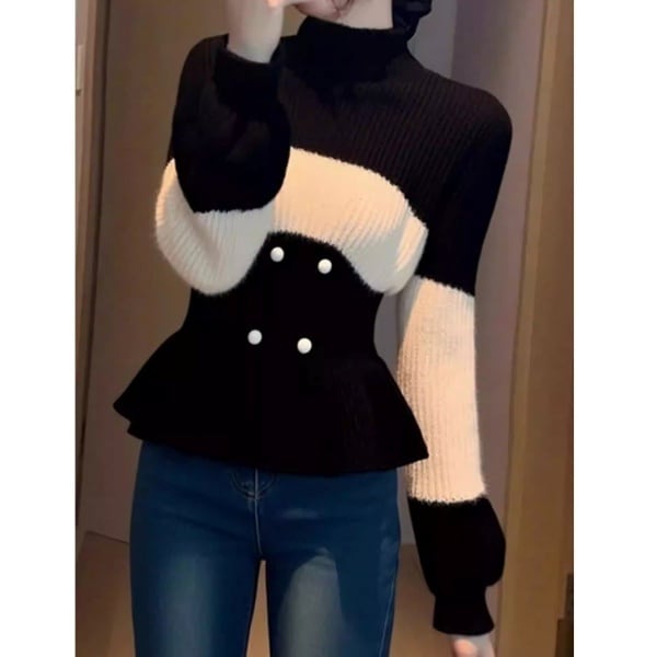 ダブルボタン バイカラー ペプラムニットトップス 238622