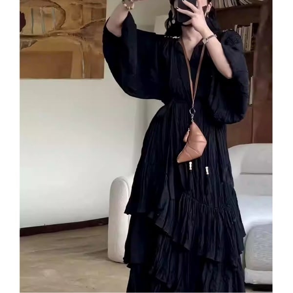 ラッフル ヘム ドルマン スリーブ マキシ ワンピース 238634