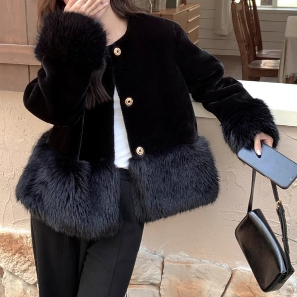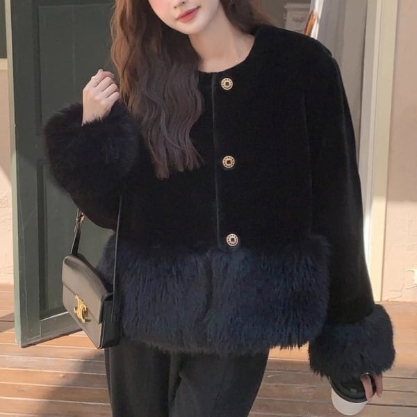 ノーカラー ショート ファー コート 238495