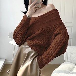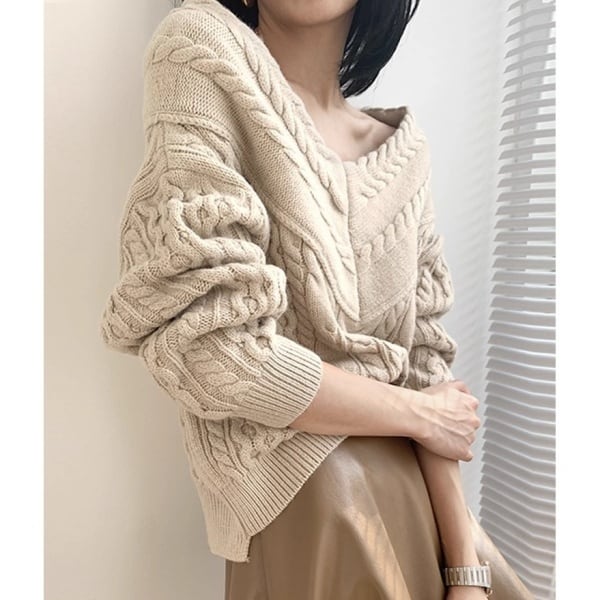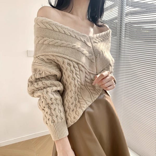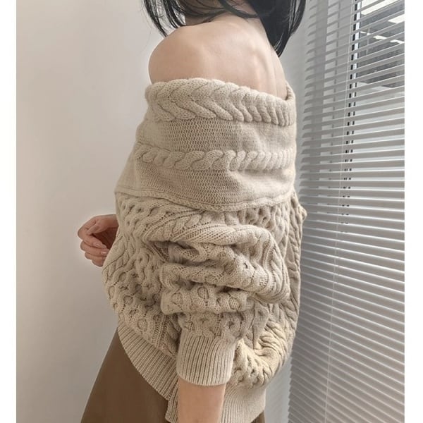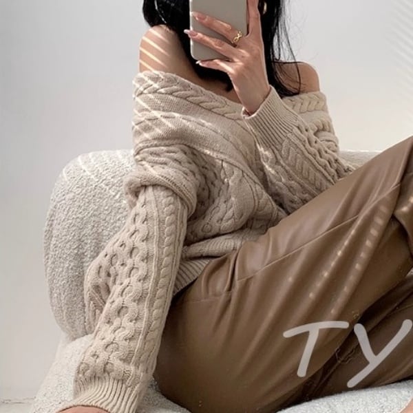 Vネック オフショルダー ケーブルニット 38907
