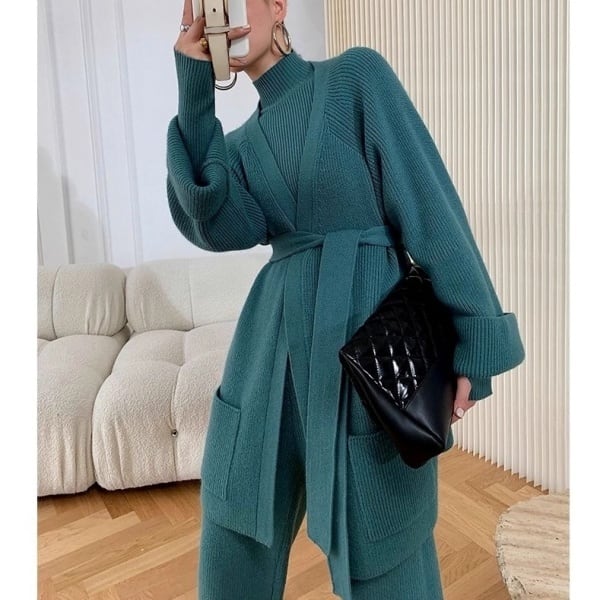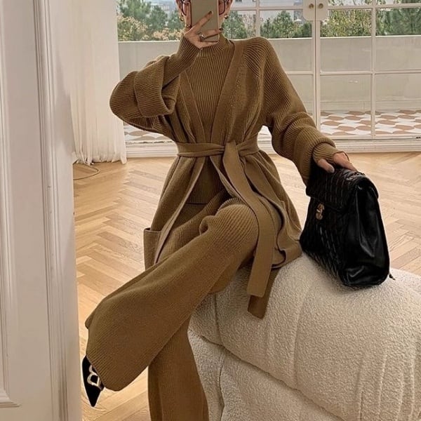 リブニット&ニットパンツ&カーディガン 3ピースセット 238832