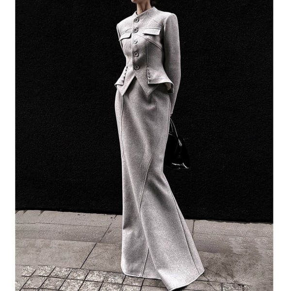 スタンドカラー ペプラムジャケット&ロングスカート 238960
