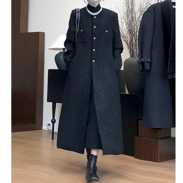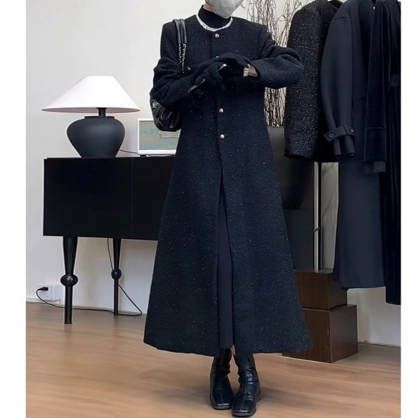 ツイード ロングコート ゴールドボタン ノーカラー 238965
