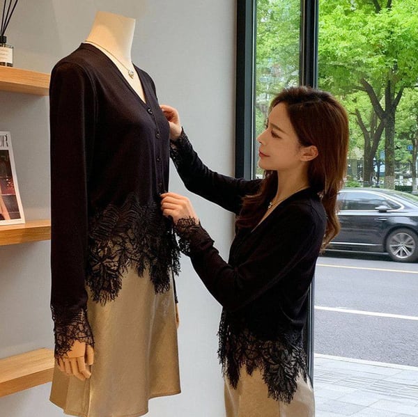 レース Vネック カーディガン 238986