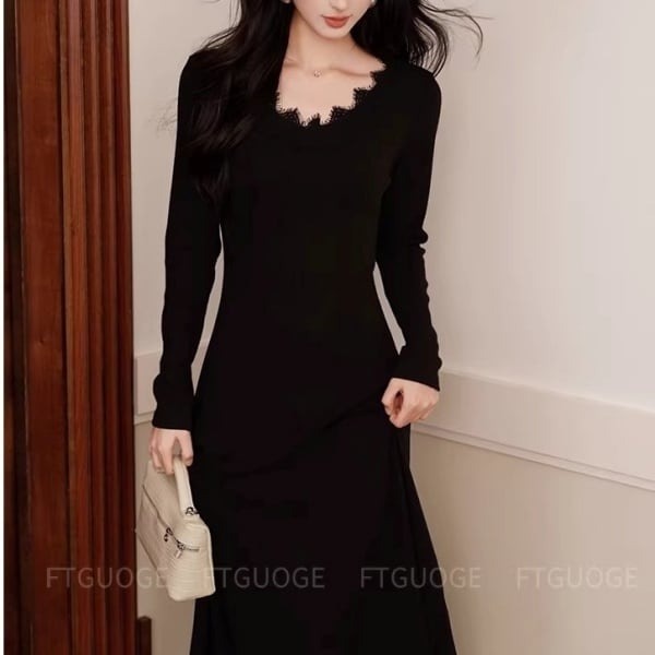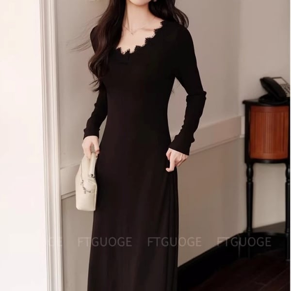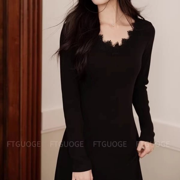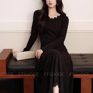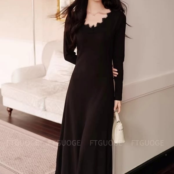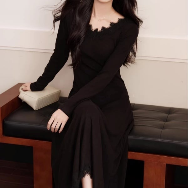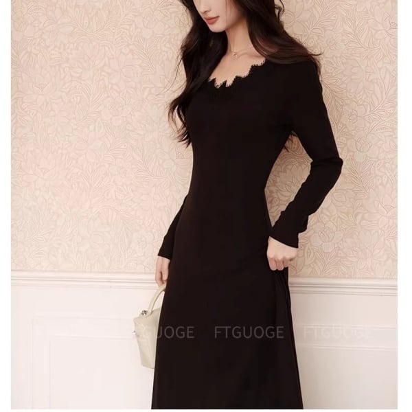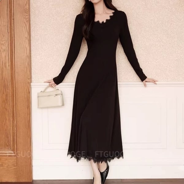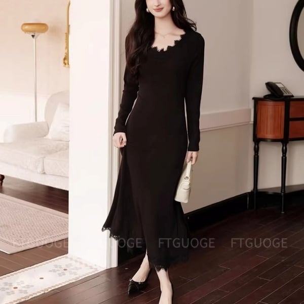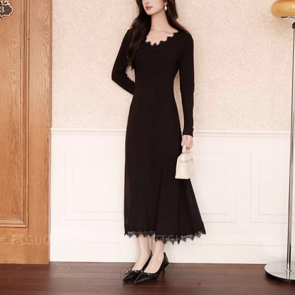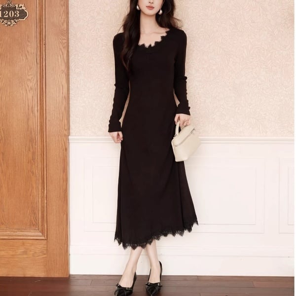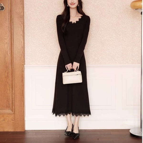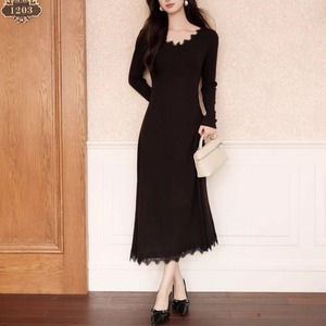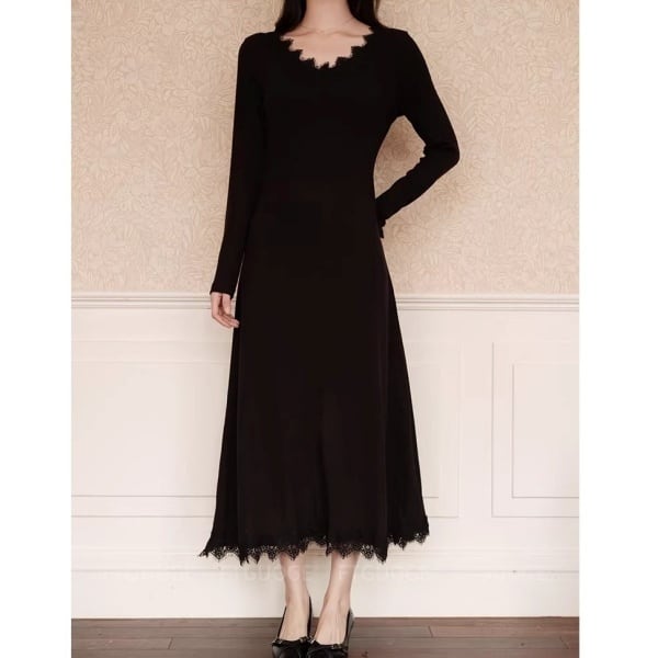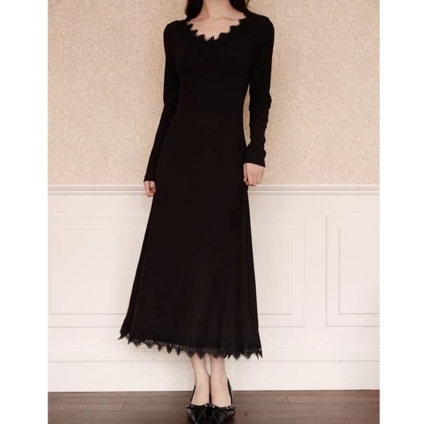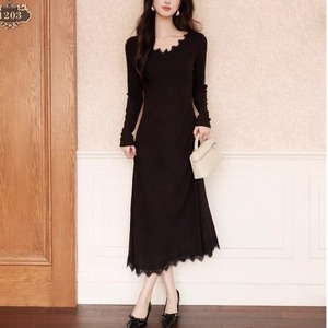 スカラップレース Vネック ロング ワンピース 239037