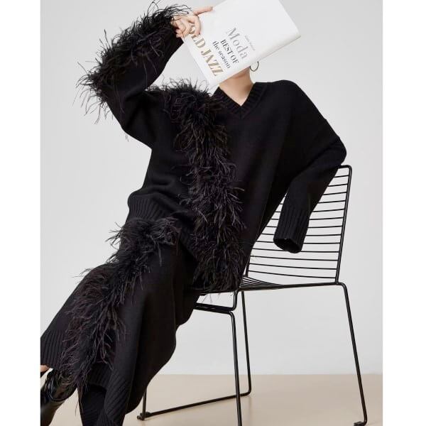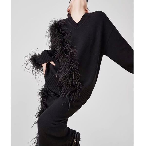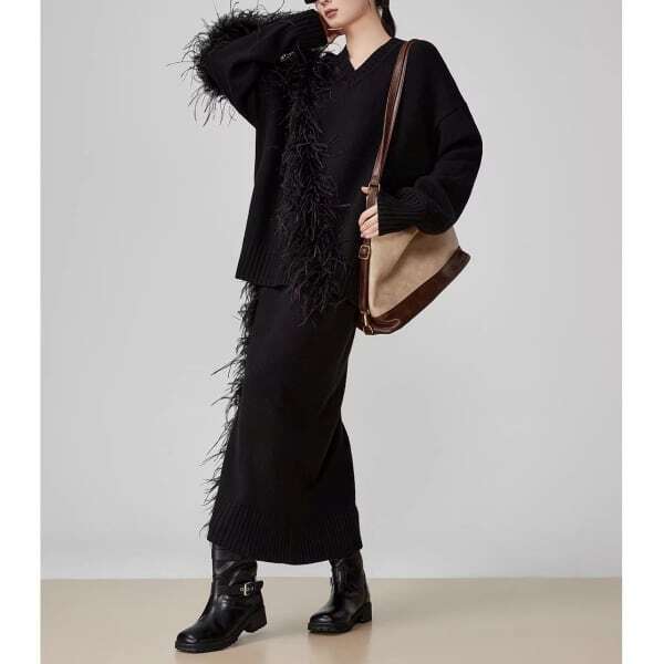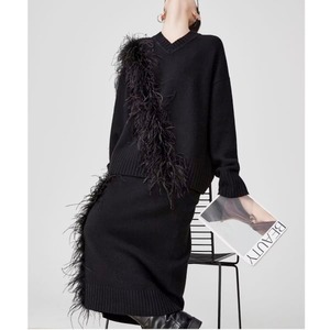 フェザーデザイン Vネックプルオーバー/タイトスカート 239218