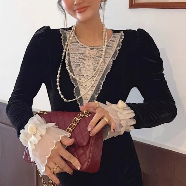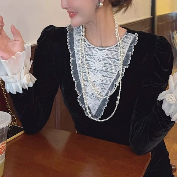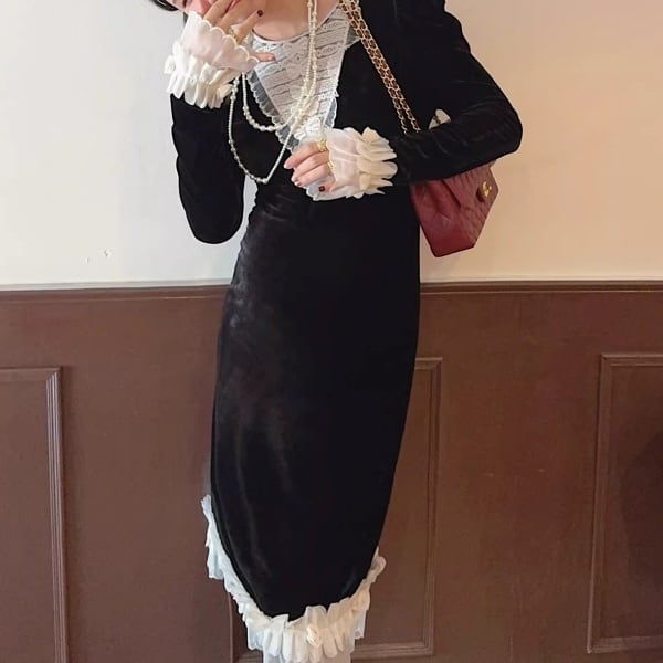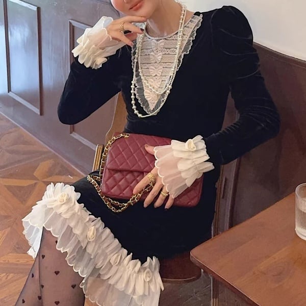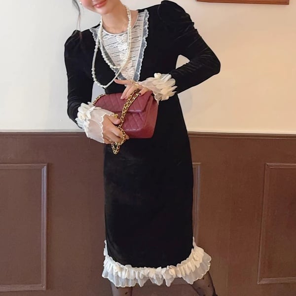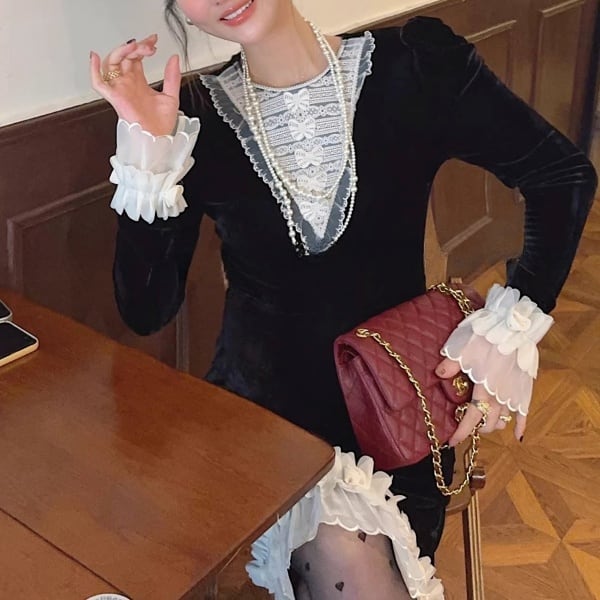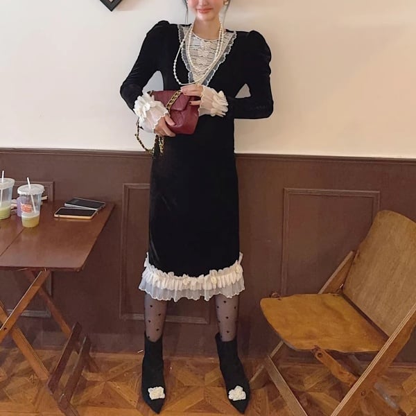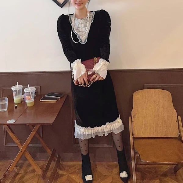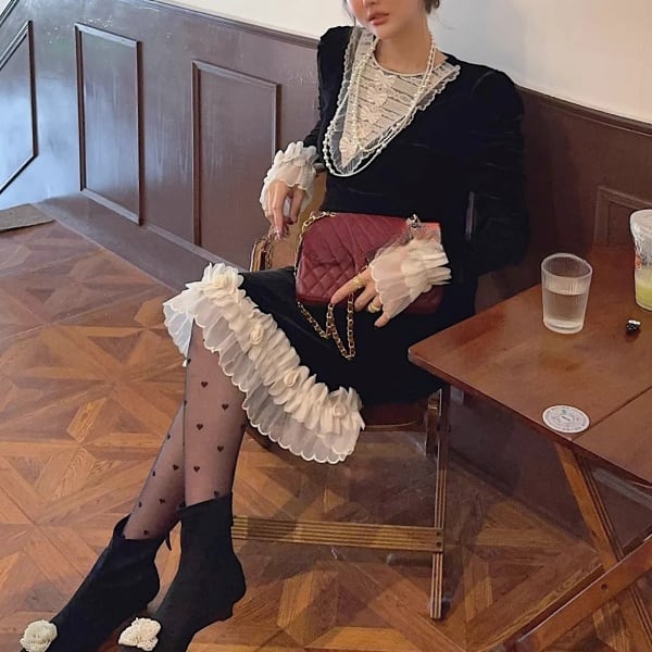 ヴィクトリアン フリルレース ベルベットワンピース 239210