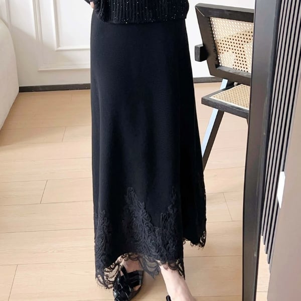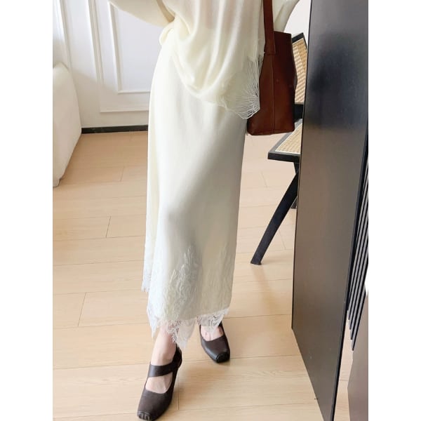 【ホワイト即納】ヘムレース ニット ロングスカート 239008
