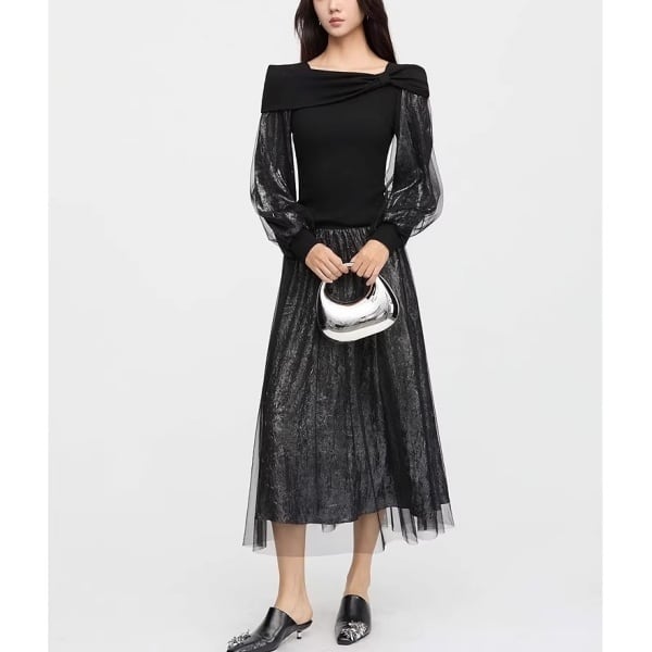 シアーメタリック ニュアンス プリーツスカート 239236